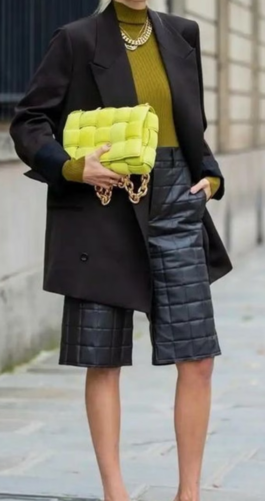 Jean Bermuda shorts provide a casual yet stylish foundation that pairs beautifully with a cropped top and oversized blazer. This juxtaposition of relaxed denim and structured tailoring creates a look that feels modern and intentional.